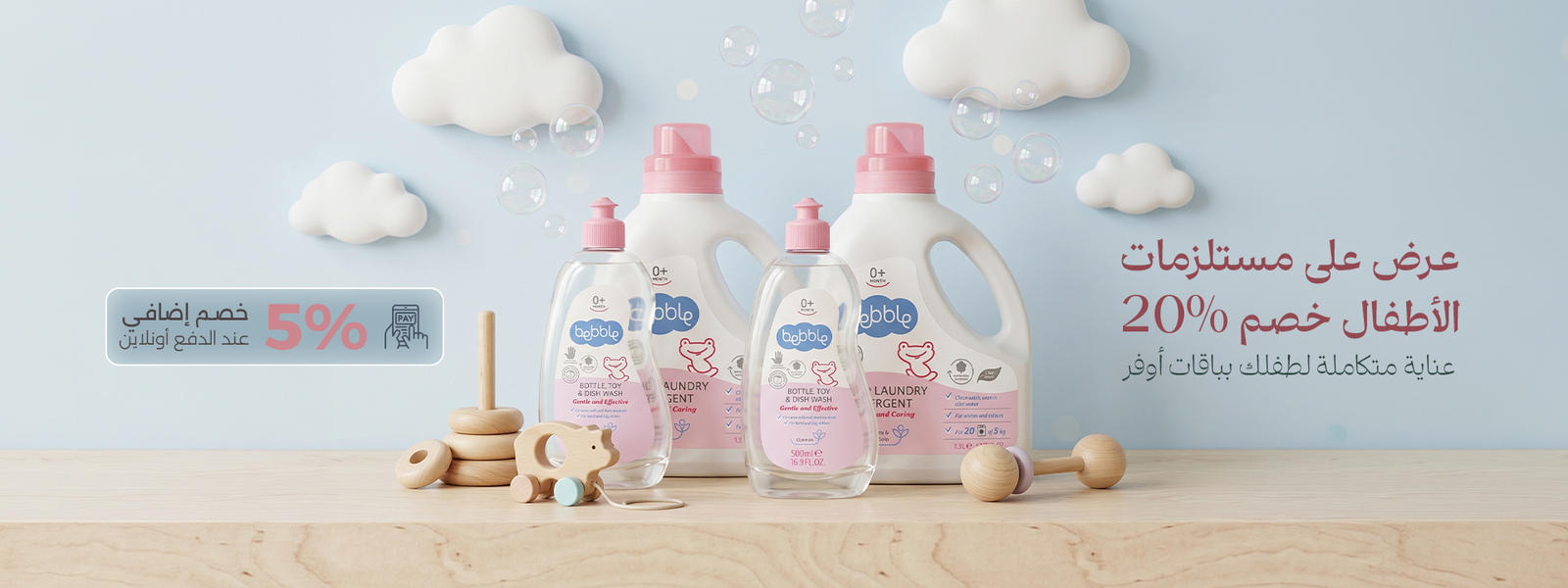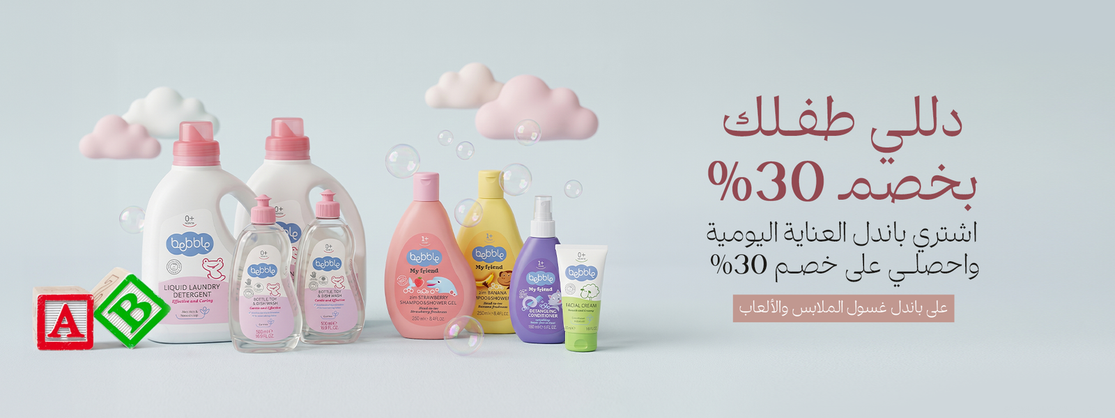 التوصيل مجاني على كل الطلبات + احصلي على خصم 30% على مجموعة غسول الالعاب والملابس عند شرائك مجموعة العناية اليومية